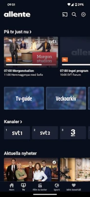Med Allente-appen ser du dina tv-kanaler och streamar filmer, serier, livesport och program när det passar dig. Upplev friheten att titta utan att följa tv-tablån. Utbudet i appen anpassas efter ditt Allente tv-paket.