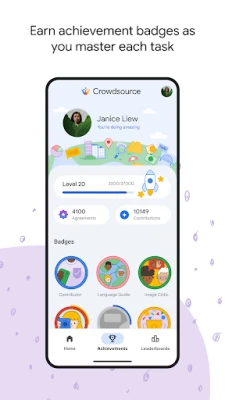 Bidra till att förbättra Googles produkter med roliga och enkla frågor. Gör framsteg, lås upp märken och dela dina prestationer. Hjälp Google Assistent, Översätt och Foto att bli bättre lokalt och globalt genom dina frivilliga bidrag. Dina insatser gör skillnad.