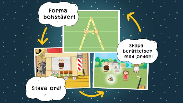 I Alfons Åbergs unika rum väntar en värld av upptäckter. Med Lek ABC, Alfons Åberg bjuds barnen in att utforska bokstävernas magi. Här får de med den interaktiva bokstavsformaren inte bara se och höra varje bokstavs unika ljud och form, utan också praktiskt öva på att rita och gestalta dem på skärmen. Det är en lekfull resa som finjusterar motorik och befäster muskelminnet, allt i barnets egen takt.