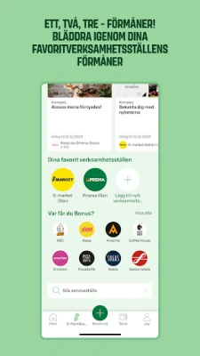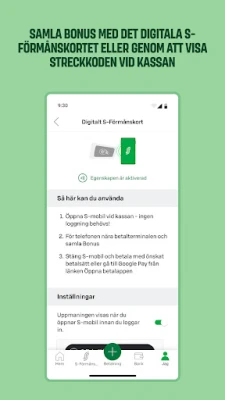 Som förmånskund hos S-gruppen får du full kontroll över dina ägarkundsförmåner. Följ din Bonusutveckling, se hur dina köp fördelar sig och upptäck andelen inhemska produkter i din korg. Använd S-mobil som ditt digitala S-Förmånskort för att samla Bonus och ta del av skräddarsydda erbjudanden direkt i din telefon. Få dina kassakvitton elektroniskt och slipp pappershögar. Du kan även enkelt hitta närmaste Bonuspartner och smidigt hantera dina personliga uppgifter och hushållets ägarkundsrelation.