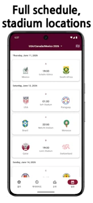 Med den här appen får du tillgång till minutiös information för varje match. Följ aktuella poänguppdateringar, se detaljerad matchinfo inklusive målskyttar, arenor och domare, och navigera genom kompletta data från Qatar 2022. Håll koll på gruppernas ställning med poäng, få en översikt över slutspelsträdet och se vilka lag som avancerar i åttondelsfinaler, kvartsfinaler, semifinaler och final. Tjänsten är redan förberedd för VM 2026:s utökade format med 48 lag, vilket säkerställer att du alltid har koll på den senaste turneringsstrukturen och alla kick-off-tider, automatiskt omvandlade till din lokala tid.