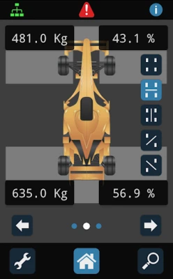 Få en djupgående analys av ditt fordons viktfördelning. Programvaran erbjuder omedelbar tillgång till en rad kritiska data, inklusive fordonets totalvikt i kilogram, samt den individuella vikten och procentuella fördelningen för varje hjul. Den beräknar även den exakta viktfördelningen mellan fram och bak, vänster och höger, samt ger dig värdefulla insikter i korsande vikter. Varje mätpunkt presenteras tydligt, vilket gör det enkelt att identifiera och justera för optimal balans och grepp på banan.